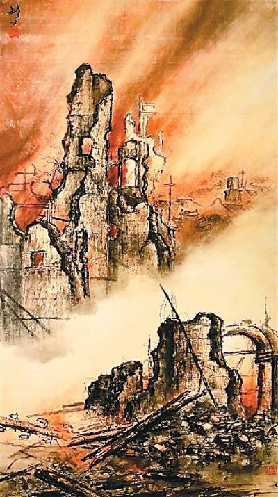 他们的《东战场的烈焰》《扑火飞蛾》《三灶岛外所见》《中山难民》等作品,不再局限于传统的风花雪月、山水虫鱼,而是饱蘸血泪,描绘破碎的山河、流离的难民、英勇杀敌的战士。一幅幅浸透着家国之思的书画,无声胜有声,让观者驻足沉思,潸然泪下。